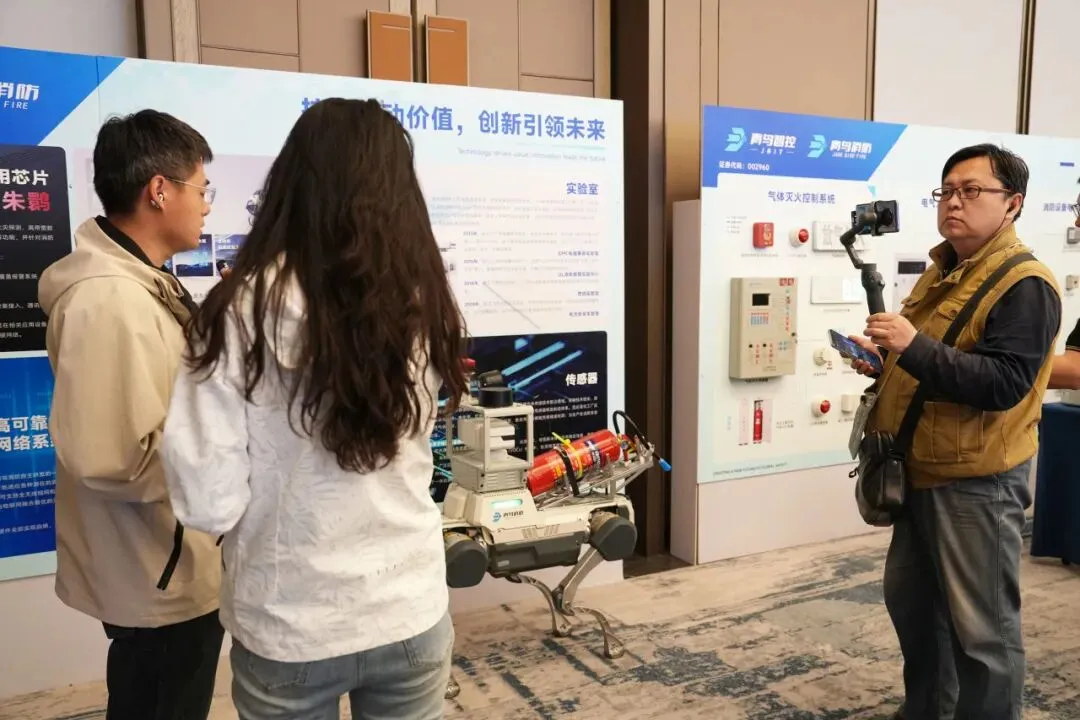 青鸟智控行业应用中心总工程师刘敏现场分享企业文化、核心产品及解决方案。他首先对 “青鸟消防” 更名为 “青鸟智控” 进行深度解读,公司将持续以消防业务为核心,同步向智能控制、人工智能等领域升级拓展,全力构建智慧消防新生态。随后刘敏先生重点介绍了公司自主研发的 “朱鹮” 芯片,凭借低功耗、高集成、强抗干扰等核心优势,3C认证数量位居国内首位;产品覆盖火灾预警、联动控制、应急疏散、灭火设备全链条,广泛深耕民商用、工业及海外市场,成功突破核电、地铁等高端领域的国外技术垄断。刘敏先生还表示,未来青鸟智控将以芯片、大模型、机器人为核心抓手,打造全场景智能消防生态,为城市安全与行业发展提供坚实保障。
