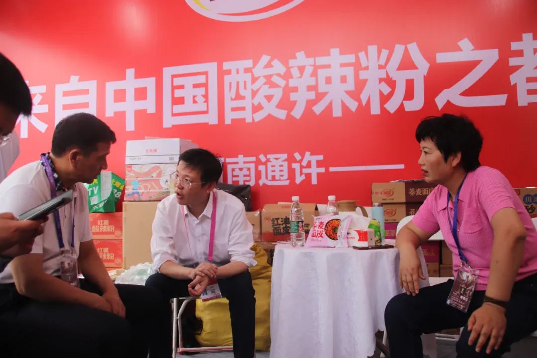 拥有快手千万粉丝的散打哥,来到公司展区,对丽星酸辣粉特别喜欢,在直播间向粉丝推荐丽星酸辣粉,表示要马上带货进行推广。