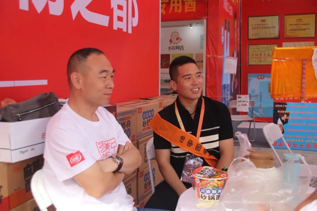 公司总经理孙总与宗总亲临会场,为大家送来水果慰问,并与经销商畅谈酸辣粉发展战略与未来方向。