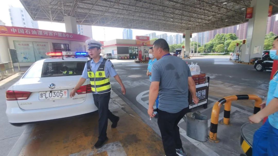 车辆通电后,车主看着仪表盘空空的油表又犯了难,“这可怎么办,我们着急赶回去,去加油站人家也不能卖给我啊!”看着满头大汗的车主,薛玉龙、王磊二人先是安抚男子情绪,随后驾驶警车带领车主前往附近加油站购买汽油。