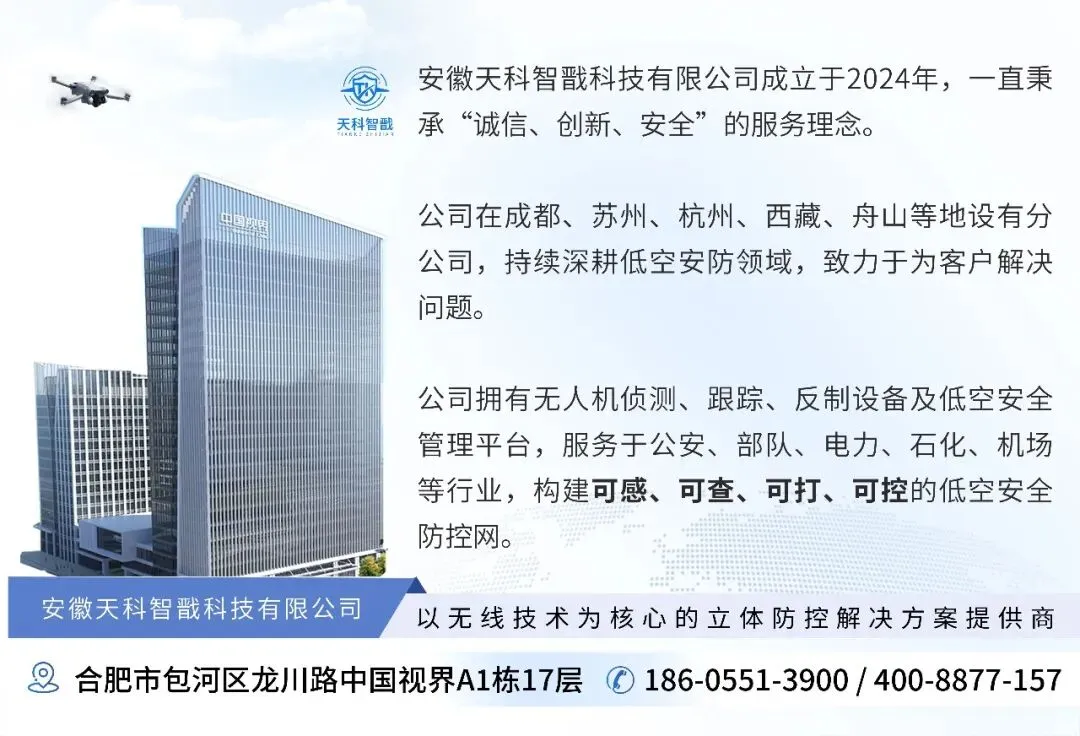 作为低空安全领域的专注企业,天科智戬围绕无人机防控与低空管理,打造“侦测—识别—管控—处置”一体化解决方案。