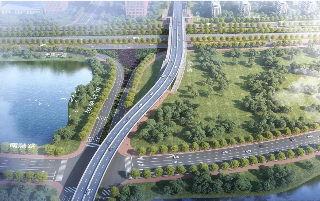 国华路与天津大道立交工程将于今年年底建成,将有效连接国家会展中心和海河教育园区,为住宿、就餐提供便利。