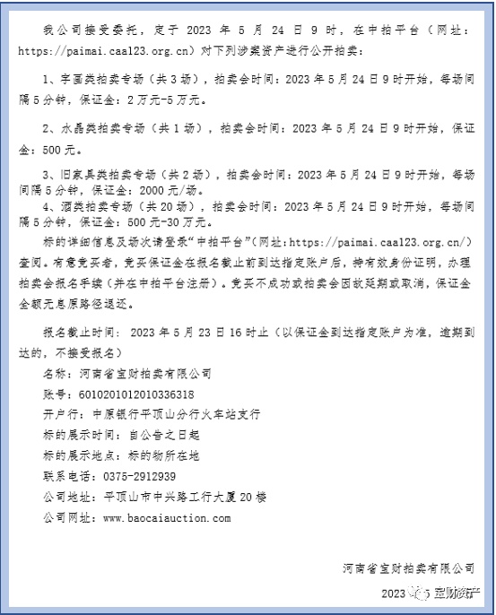 (注:拍卖标的相关信息以《拍卖文件》及拍卖会上公布的内容为准)
