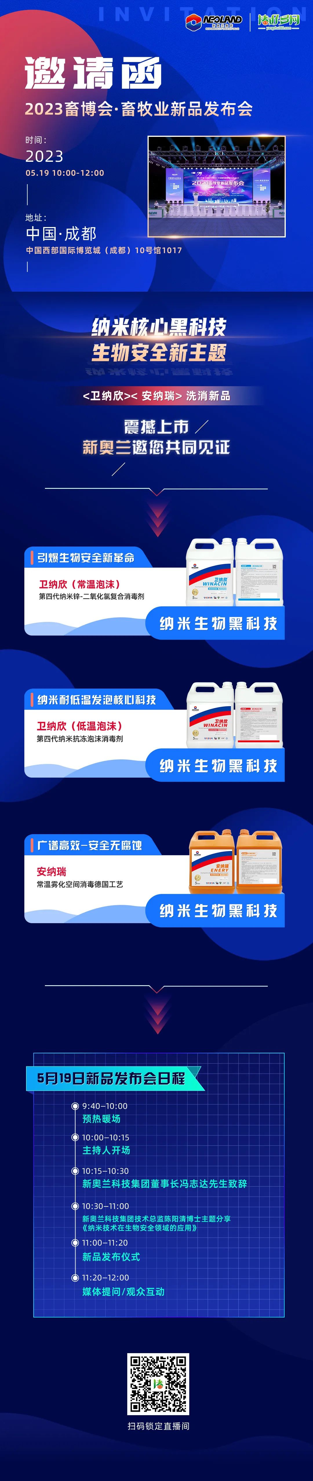 2023畜博会·畜牧业新品发布会,5月19日<卫纳欣><安纳瑞>洗消新品新奥兰邀您共同见证