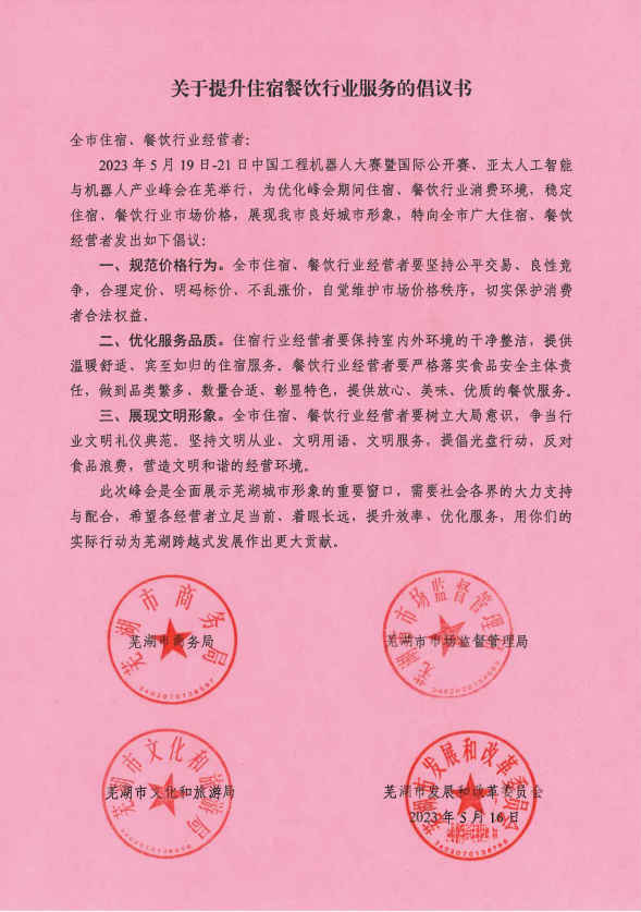 关于提升住宿餐饮行业服务的倡议书
