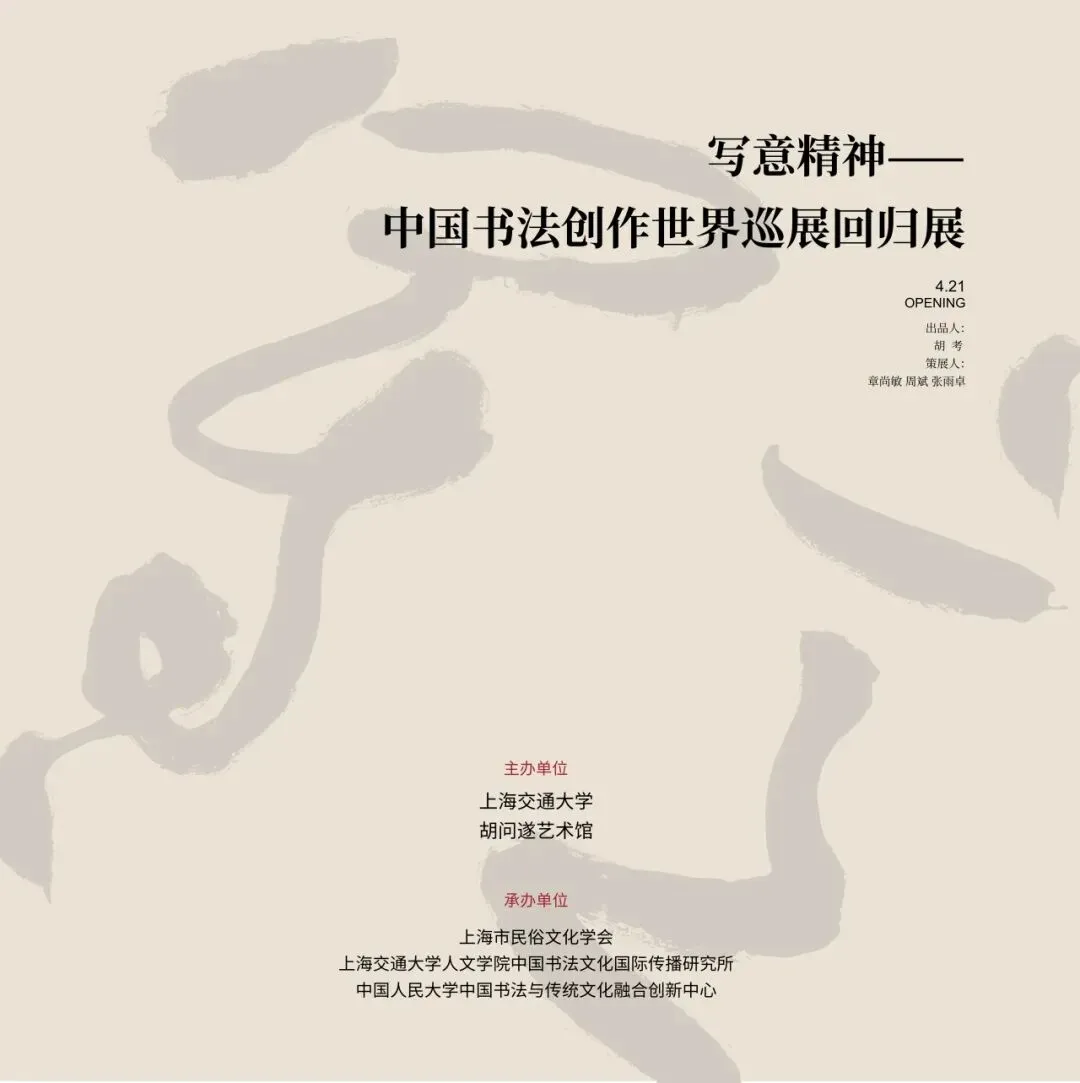 《写意精神——中国书法创作世界巡展回归展》是由上海交通大学立项的2019年度国家艺术基金传播交流推广资助项目。国家艺术基金是经国务院批准设立的国家级公益基金,致力于扶持优秀艺术创作,打造和推广精品力作,推动中国艺术事业高质量发展。基金始终坚持创造性转化与创新性发展,聚焦新时代中国精神的艺术表达,积极弘扬中华优秀传统文化,向世界讲好中国故事,展现中华文明的深厚底蕴与时代风采。