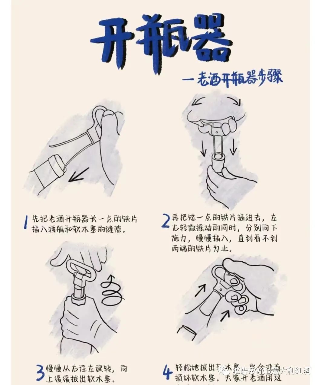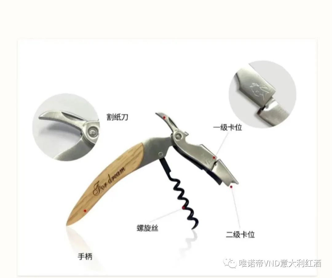使用方法:使用海马刀开瓶时,先用小锯齿刀切开酒帽,再将螺旋钻尖端旋入软木塞中心,之后直立螺旋钻,顺时针方向旋转钻入软木塞中,利用杠杆原理用第一级卡槽点卡住瓶口,翘起木塞,翘起后再用第二级卡槽点翘起木塞。这种海马刀不仅美观,而且使用起来方便,简单还省力。