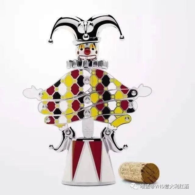 这个开瓶器以小丑为原型制作的开瓶器,外形是小丑站在表演道具上的一个造型,而且设计颜色是层次分明,帽子是黑色的,衣服上黄红的点,而且还有脖子上的褶皱套,而且表情也是设计的小丑非常开心的表情,也带有一些喜庆的样子,而且最重要的是这款开瓶器也是世界上最贵的其中一种,是在意大利创意而成,也代表着弄臣的形象。