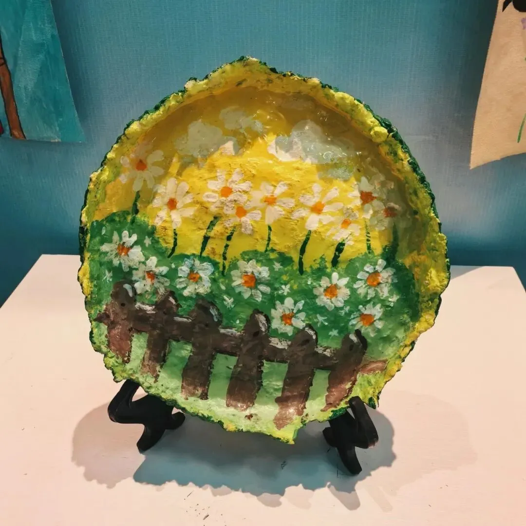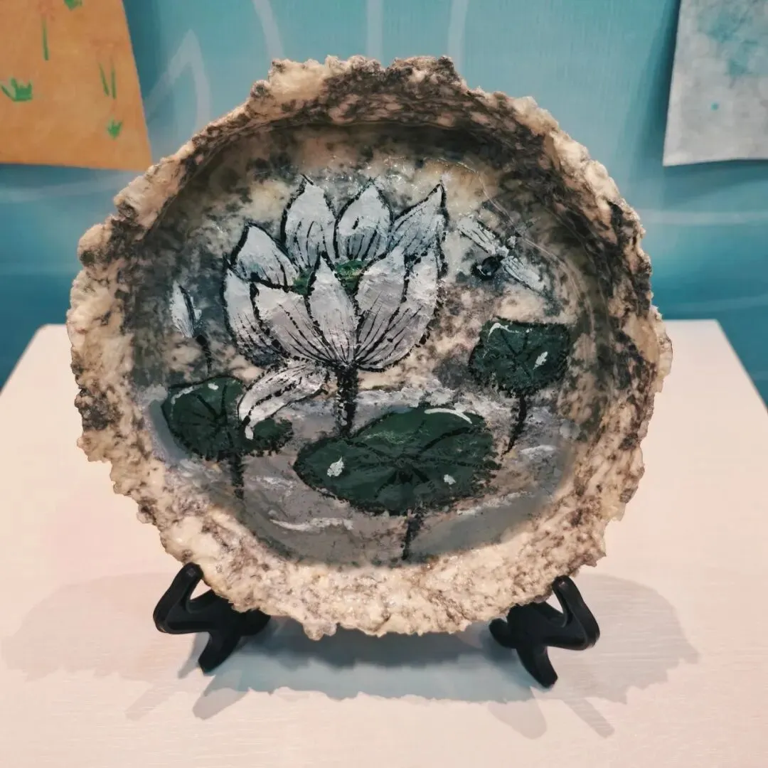 纸浆画,类似彩泥画,却更环保、更有温度——以废纸为原料,经过分类、浸水、打碎,变成可循环利用的纸浆,在木、瓷、玻璃、石、纸等不同材料上绘制而成。成品色彩鲜艳,自带浮雕与立体效果,艺术感十足。