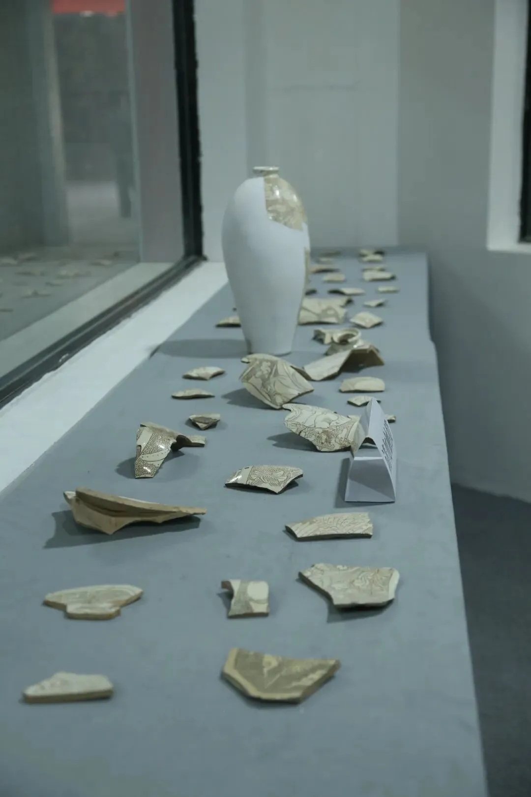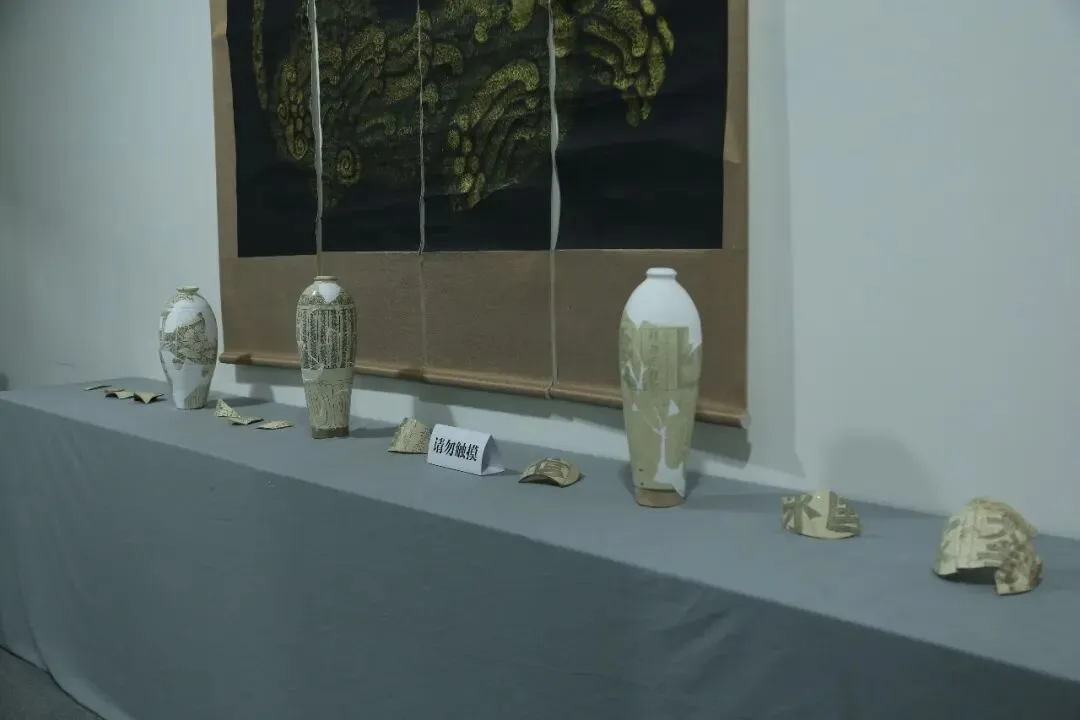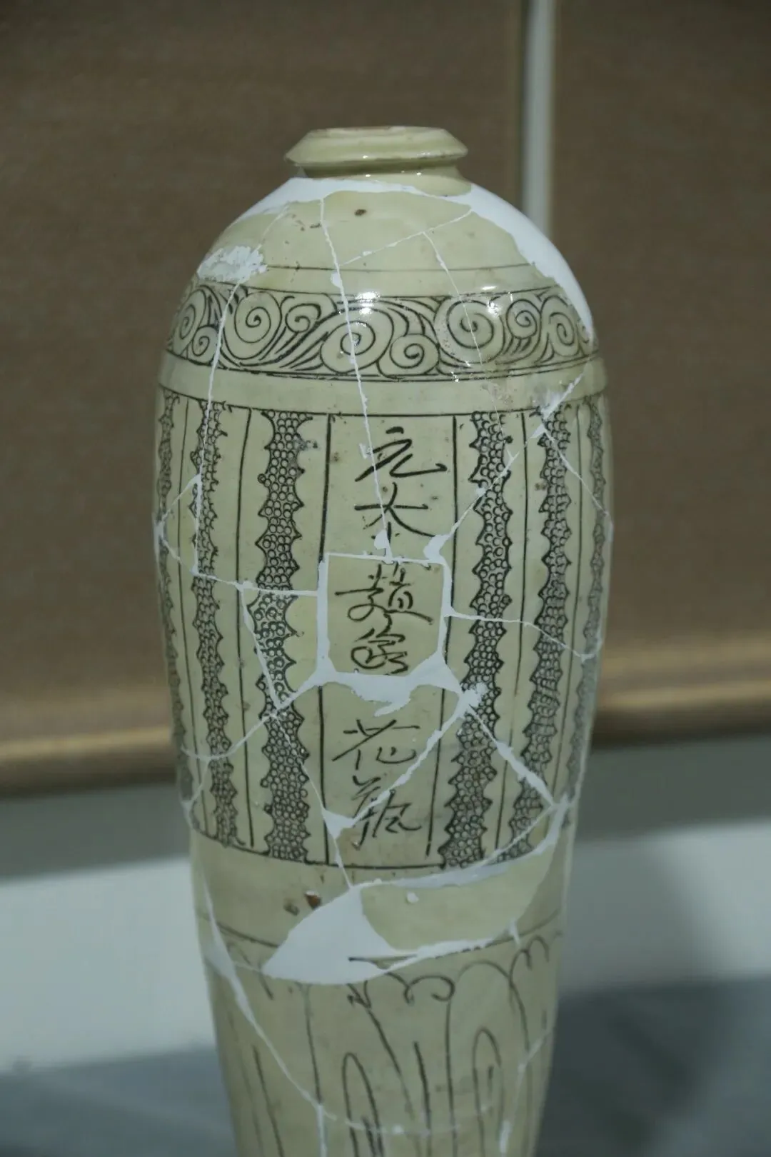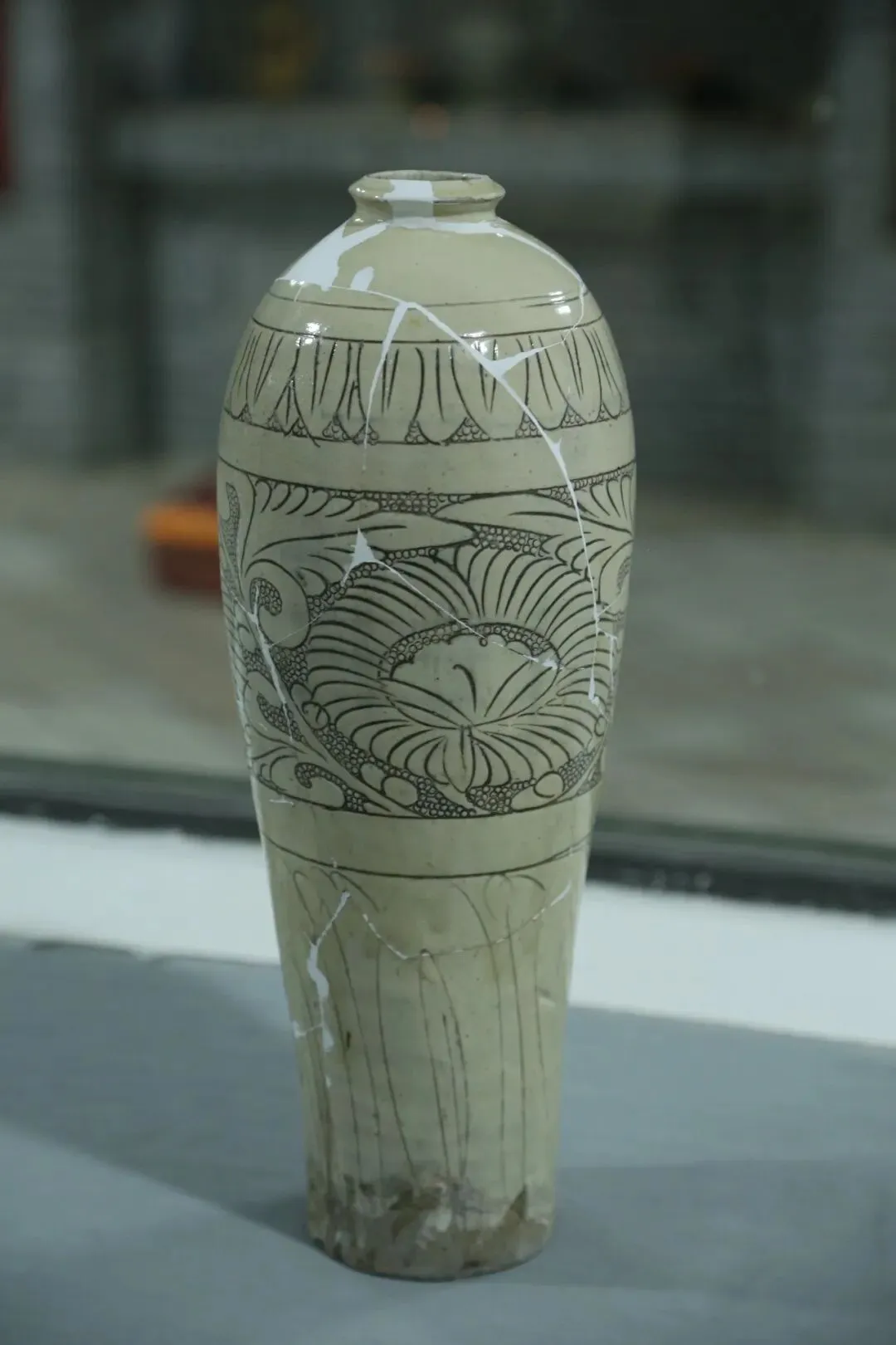经石膏修复完整的梅瓶、各类器皿错落陈列