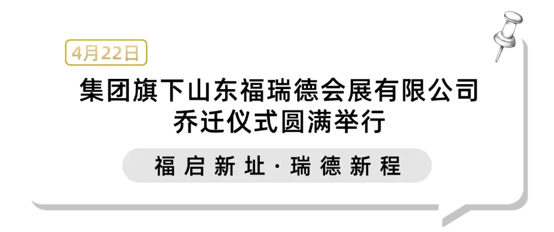 4月22日,这个承载着喜悦与期许的日子,集团旗下山东福瑞德会展有限公司乔迁仪式圆满举行!全体福瑞德家人齐聚一堂,共赴全新征程,共绘会展新蓝图。本次乔迁仪式以“福启新址·瑞德新程”为主题,以“会展人·新起点·聚锋芒”为口号,既是对过往耕耘的致敬,更是对未来发展的期许。新环境承载新梦想,新起点孕育新希望,山东福瑞德会展有限公司将以此次乔迁为契机,焕新出发,逐光前行。