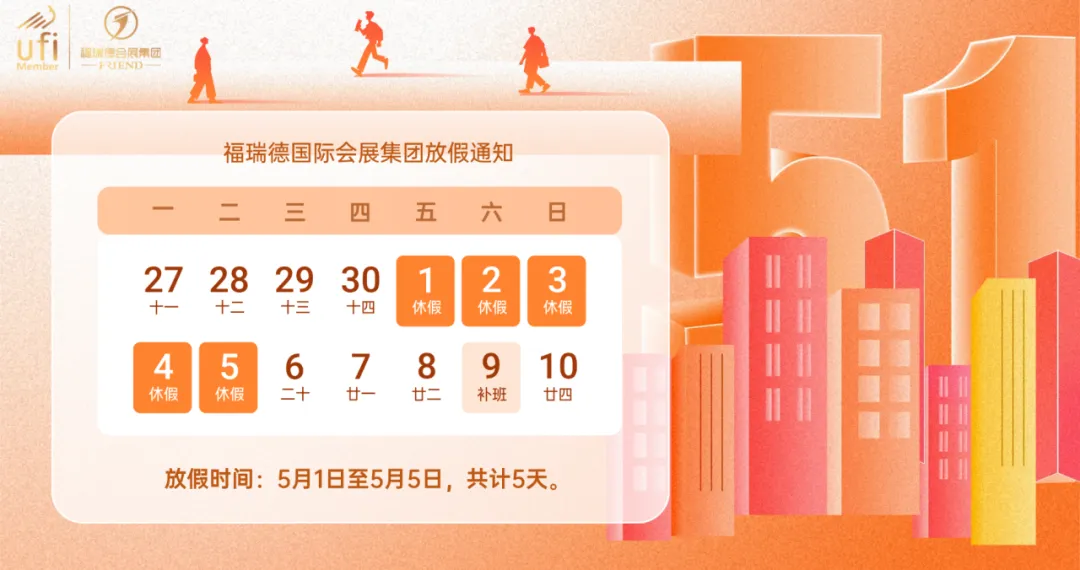 值此劳动佳节来临之际,我们共同庆祝全世界劳动者的光辉节日。根据国家节假日安排,集团2026年五一劳动节放假时间为5月1日(星期五)至5月5日(星期二),共5天。在此,集团董事长孙立伟携全体员工,向每一位辛勤付出的福瑞德家人和关心支持集团发展的伙伴,致以诚挚的问候和崇高的敬意!愿大家在这个属于劳动者的节日里,放松身心、积蓄能量,继续以奋斗姿态书写集团发展新篇章!祝愿大家五一劳动节快乐、阖家幸福、万事顺遂!