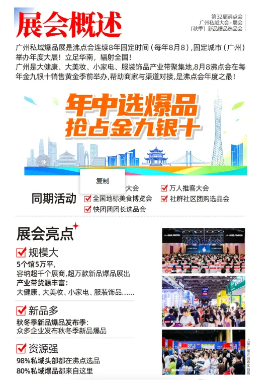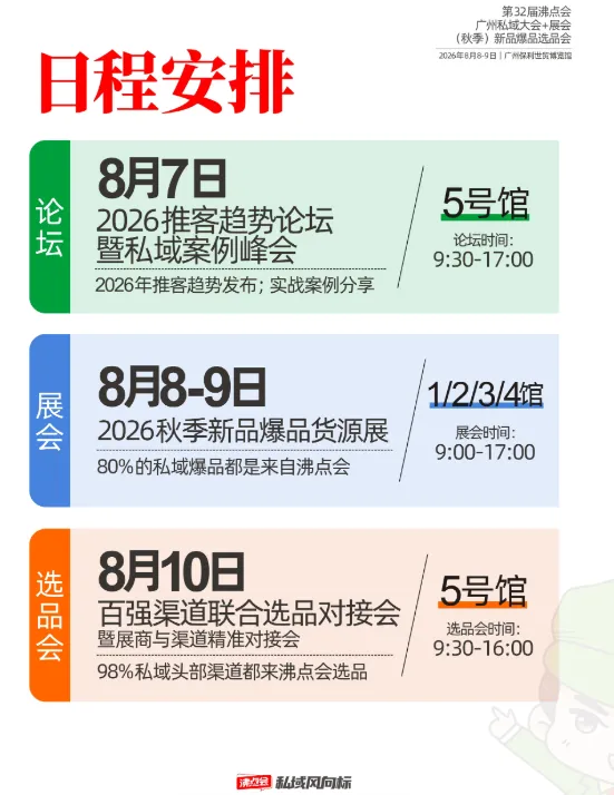 第32届广州私域选品会? 精准对接日:2026年8月10日 ? 展会地址:广州保利世贸博览馆·5号馆