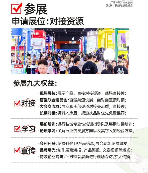 ✅ 98%头部私域渠道现场驻场 ✅ 面对面精准洽谈,高效打通分销渠道 ✅ 提前卡位金九银十,抢占下半年销量红利