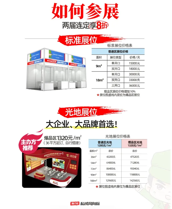 普通展区:1200元/㎡ 爆品专属展区:1320元/㎡