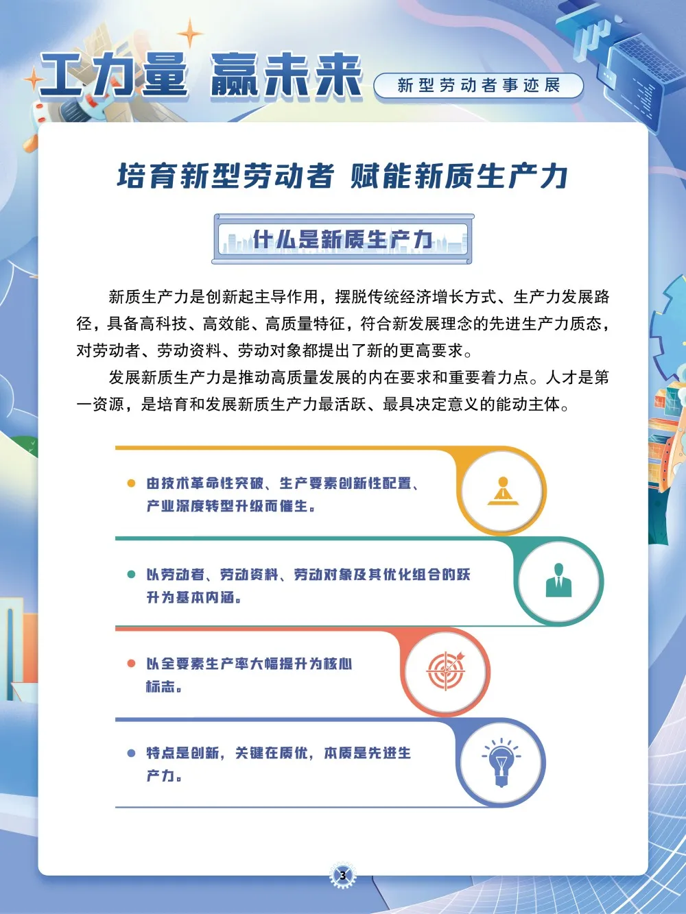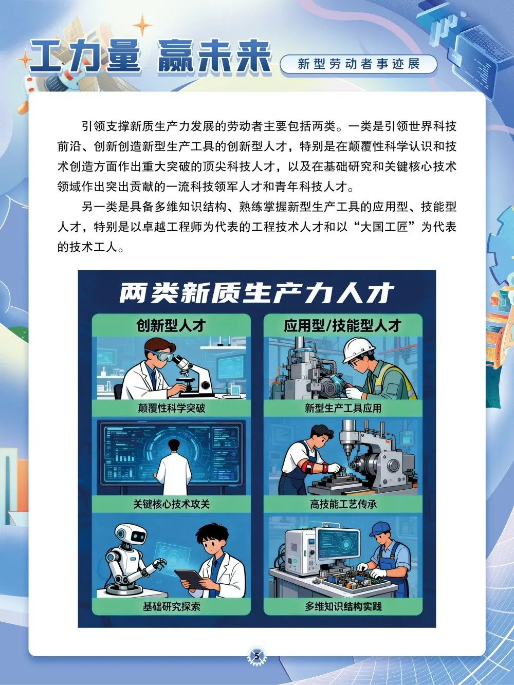 在新质生产力的培育与发展进程中,劳动者始终是最活跃、最具决定性的核心要素。新质生产力为经济社会高质量发展注入强劲动能,而新型劳动者正是驱动这一历史性变革的核心主体。他们以智慧赋能技术突破,以匠心雕琢产业精度,以实践推动创新转化,不断拓展人类生产与创造的认知边界、能力边界。
