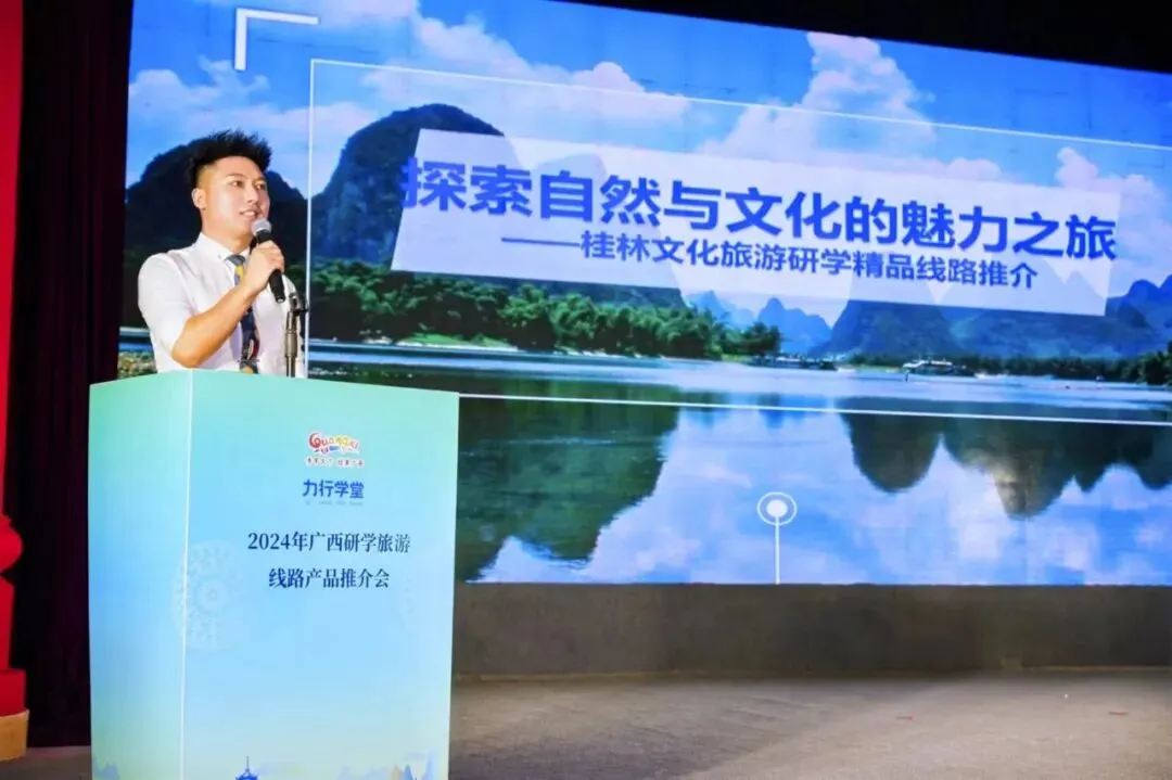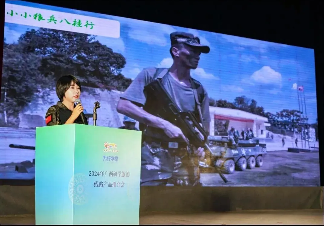 活动现场还进行了广西研学旅游地接线路及夏令营产品推介、“一键游广西”一键研学版块推介、广西陆战学生军训基地研学产品推介、大湾区研学产品推介等多项专题研学旅行产品推介。内容涵盖山水风光、自然地理、人文历史、红色足迹、民族风情、工业文化等丰富内容,为游客提供多元化、定制化的研学旅游选择。