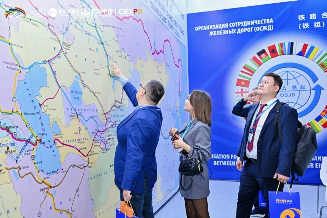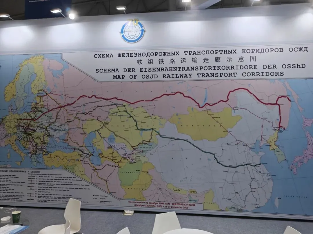 铁路合作组织展位展示的(亚欧大陆)铁路运输走廊示意图