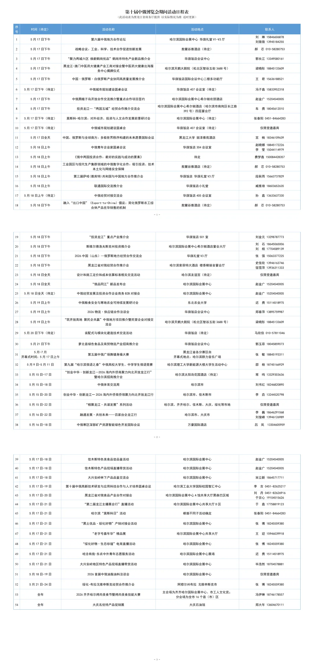 持续更新NEW|第十届中俄博览会期间活动日程表