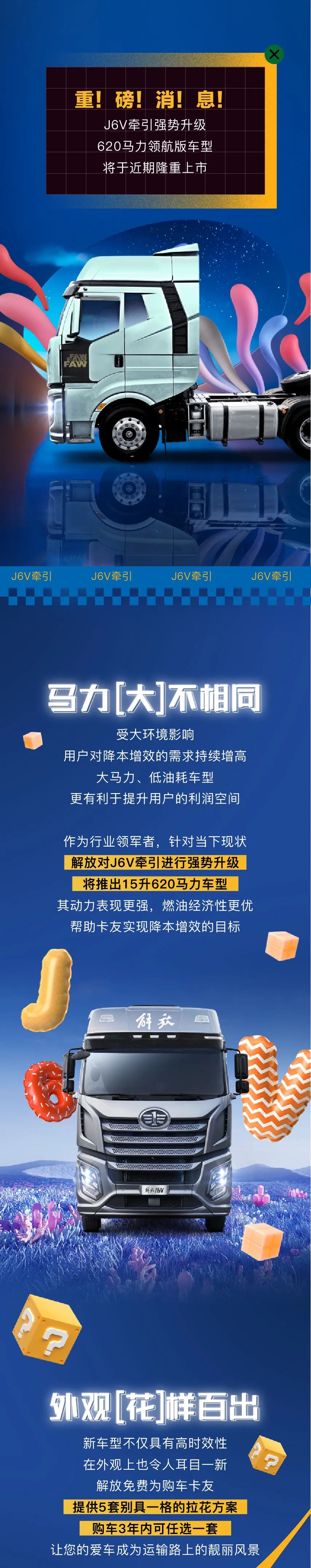 名车博览丨J6V领航版620马力牵引,将携拉花大赛震撼来袭!