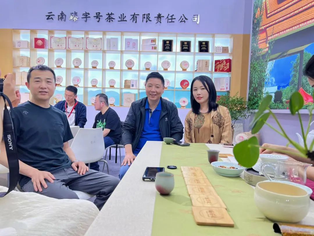 5月5-7日,郑州茶博会,臻字号创始人邱明忠、臻字号郑州经销商家人田华出席茶博会现场。现场人潮涌动,满室茶香,共同品鉴头春古树精品老班章、景迈熟茶等高端森林古树茶。