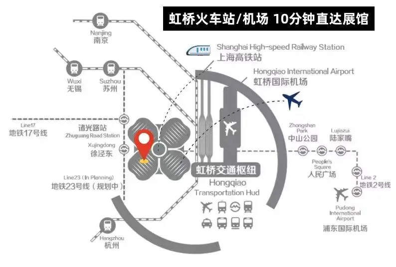 毗邻上海虹桥机场、虹桥火车站,地铁10分钟直达展馆