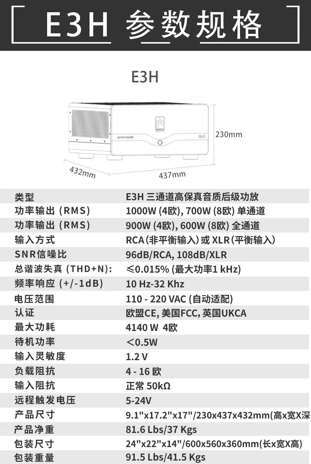 北美之声·爱湃浓(Aperion Audio)Energy系列后级功放