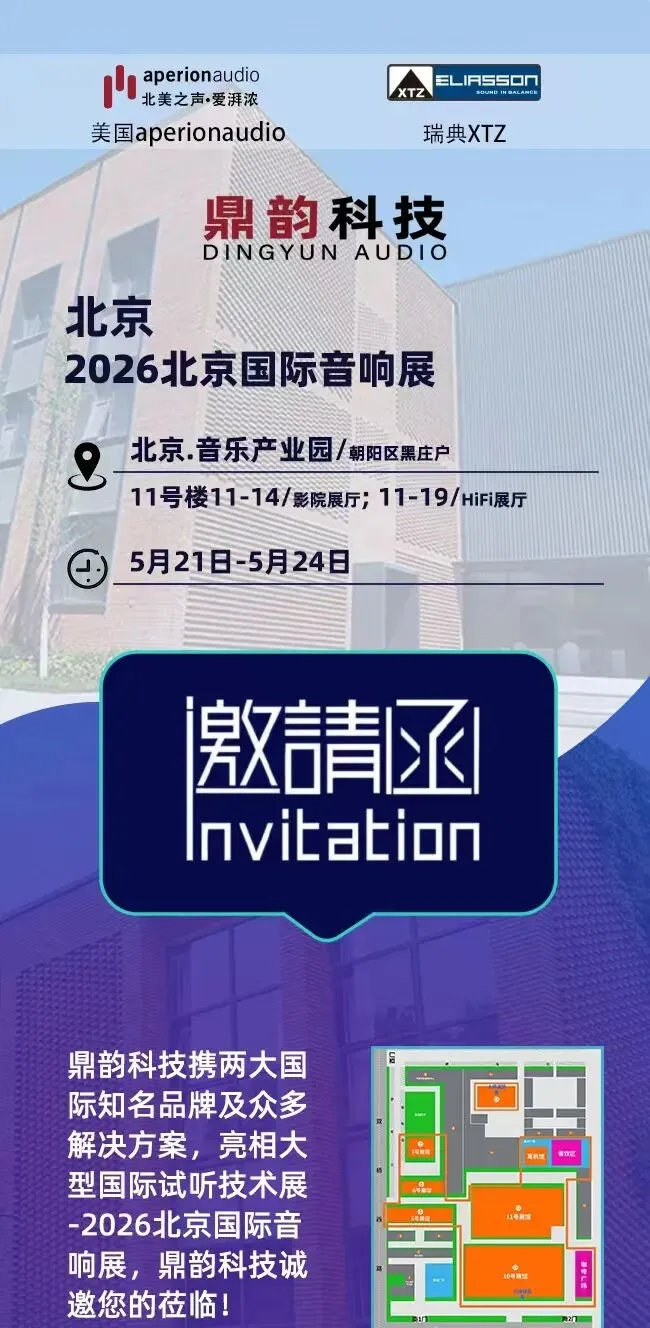 鼎韵科技(广东)有限公司正式对外宣布,将亮相于2026年5月21日至24日在京城北京隆重举办的“2026北京国际音响展”。届时,我们将全方位展示品牌前沿的杜比全景声影音技术,并呈上一系列独具匠心的高端家庭影院以及高保真音响系统解决方案,诚邀各界友人亲临展会现场,共赴这场无与伦比的视听狂欢。