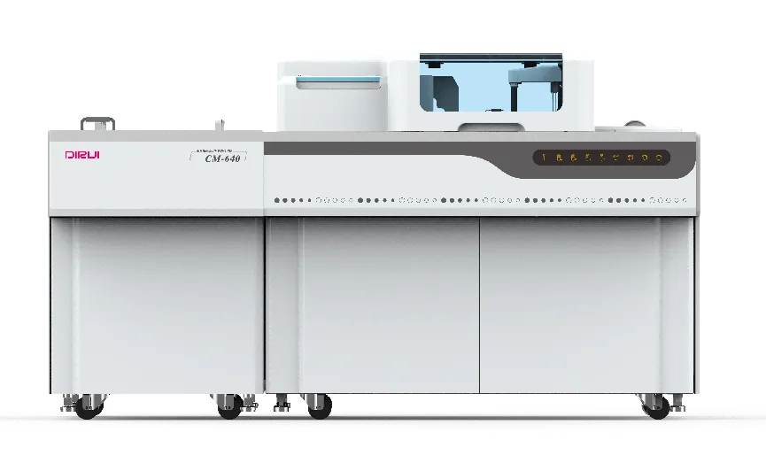 迪瑞CM-640全自动化学发光免疫分析仪,640测试/小时超高速,吖啶酯直接发光高灵敏。620样本大容量,急诊优先、不停机补给;项目全覆盖,可扩展流水线,适配大型医院与高端第三方实验室。