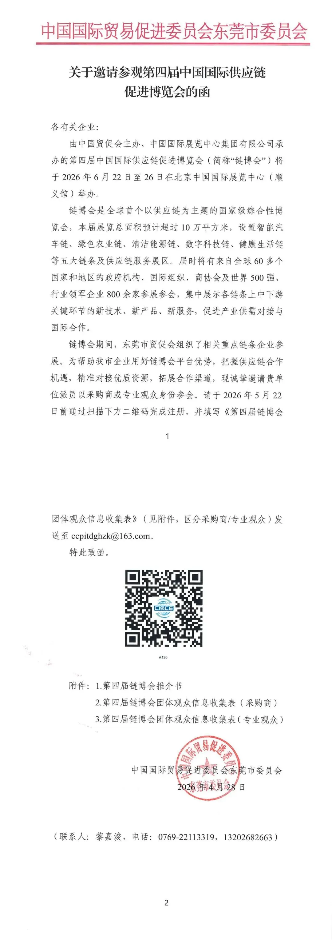⭐各企业:由中国贸促会主办的第四届中国国际供应链促进博览会,将于6月22日-26日在北京举办。集中展示智能汽车链、绿色农业链、清洁能源链、数字科技链、健康生活链、先进制造链及供应链服务展区,全球800多家企业参展,是供应链领域国家级专业展会,具体详情请见‘附件1-推介书’。