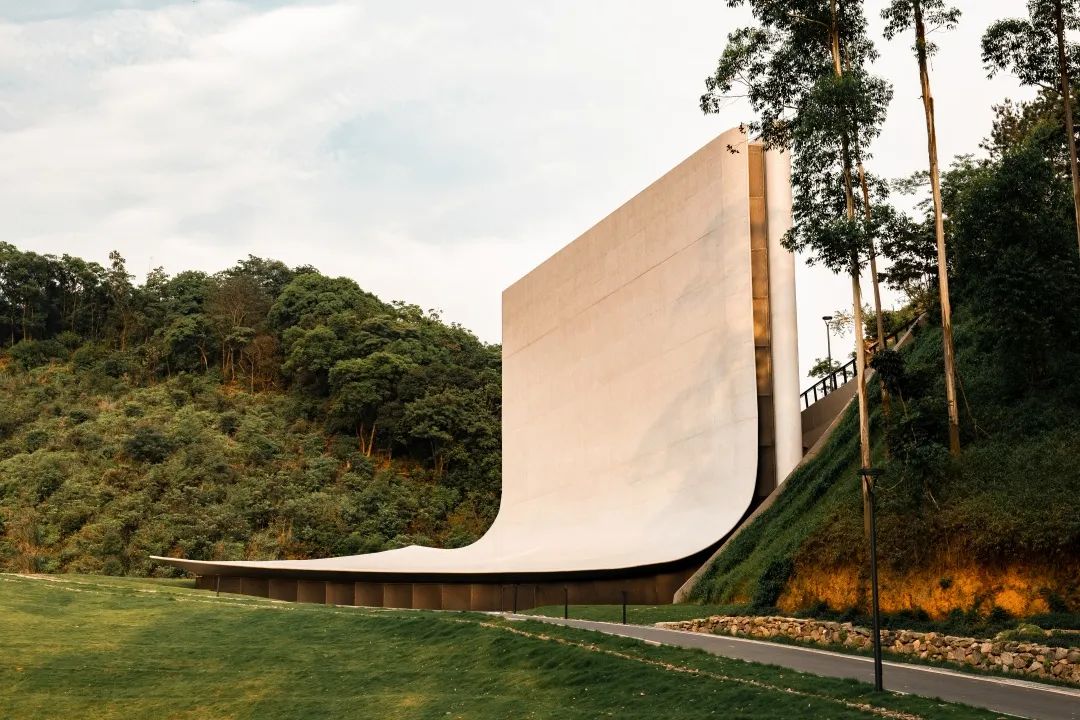 © 叶文锐建筑的墙体和屋面采用清水混凝土浇筑而成。以最简朴的质感展现建筑的形体。双曲面屋顶及厚度渐变挑檐的模板工艺是一个挑战。