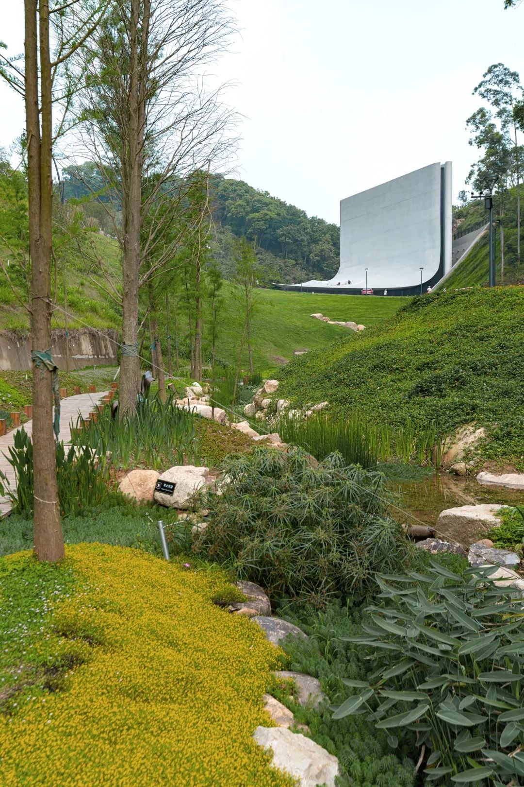 在广州近郊的天人山水大地艺术社区,一个占地 15000 亩的康养,度假,艺术社区中,需要一个建筑物,让老人能感受到社区的核心精神:重拾生命的价值。这个建筑需要厚重的质感,成为社区的象征;灵动的造型,蕴含生机与活力;感人的空间,唤起心灵的共鸣。