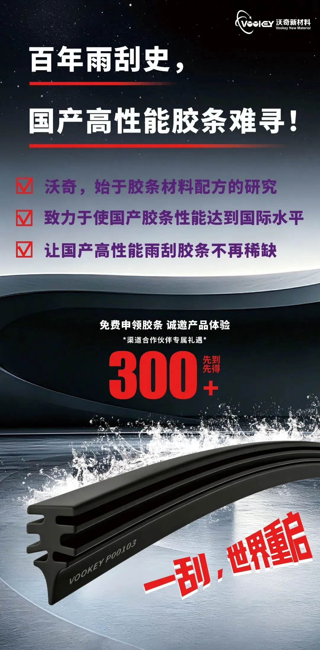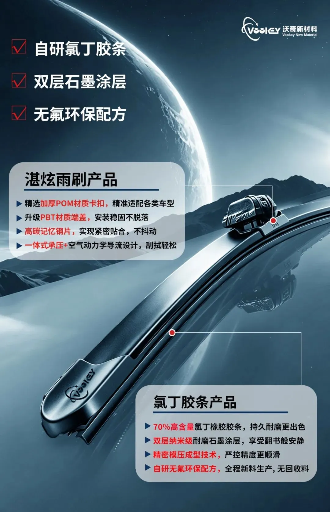 沃奇新材料携湛炫全系列高端雨刮器、雨刮胶条重磅参展,以硬核技术赋能汽车雨刮升级,诚邀各位汽配同仁、经销商、车企伙伴,莅临N7 馆 71221 展位,近距离感受沃奇雨刮的品质实力,共拓西南市场新蓝海!