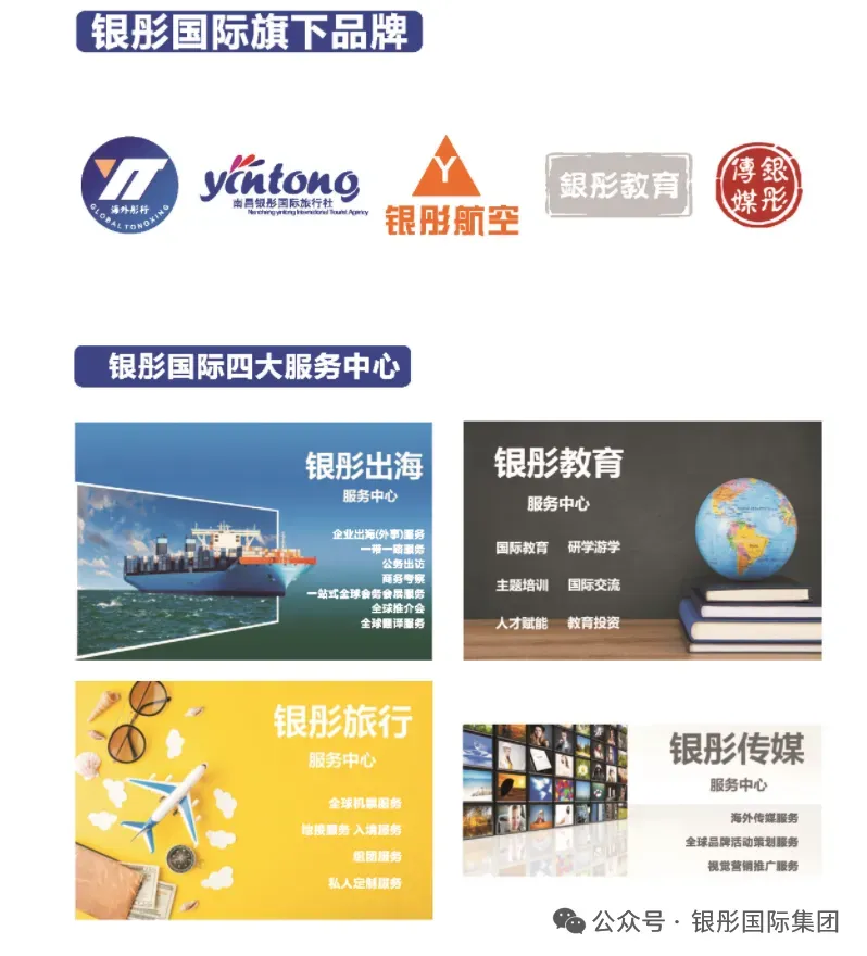 银彤(国际)集团有限公司始创于1996年,是一家深耕文旅、航空、外事、教育、传媒等多领域的综合性民营企业集团,凭借二十余年深厚行业积淀,集团已发展成为资历雄厚、资源广泛的国际化服务标杆企业,自组建以来在各级政府部门及社会各界支持下,始终坚持“以人为本”,依托科技进步强化企业管理,专注服务产业开拓发展,秉持“产品创新、经营创新、商业模式创新”的原则,不仅取得了辉煌业绩,更率先形成规模化服务能力。在业务布局与全球网络建设上,集团启动南昌、珠海双总部驱动协同发展战略,同时在北京、上海、广州、深圳、成都、武汉、南京等国内重点城市完成业务布局,目前已在 40 多个国家设立联络处,构建起覆盖全球的服务网络,旗下拥有多家核心子公司,南昌银彤航空服务有限公司、南昌银彤国际旅行集团、江西银彤文化传媒有限公司、江西银彤教育科技集团有限公司、珠海澳建教育产业集团有限公司,构建起多元互补的业务架构:同时兼顾国际专业属性与国内特色需求,以紧密协作、资源共享的产业链模式,实现各业务板块快速协同发展,既具备业务开拓的敏锐触觉,也大幅优化提升了集团整体竞争效力。为精准匹配客户需求,集团还设立四大核心服务中心 -- 银彤出海服务中心、银彤教育服务中心、银彤旅行服务中心、银彤传媒服务中心,以此为支撑,业务全面覆盖国际国内公商务差旅出行、国际外事办理、国际会务会展策划、出海全链条服务、红色文化教育、主题培训及特色文旅体验等多个领域。