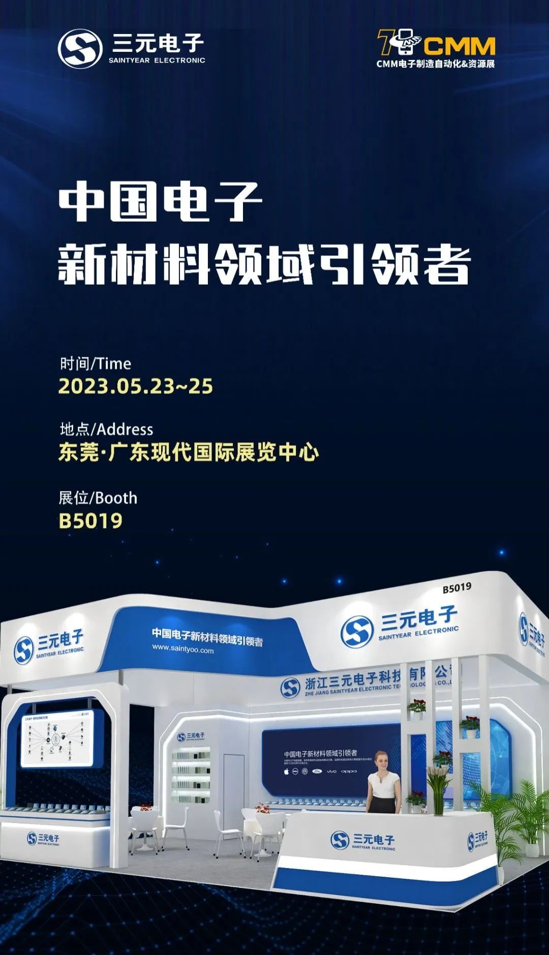 2023年5月23日-25日,第7届CMM 电子制造自动化&资源展在东莞厚街广东现代国际展览中心盛大开展!三元电子诚邀您莅临3馆B5019展台莅临指导!