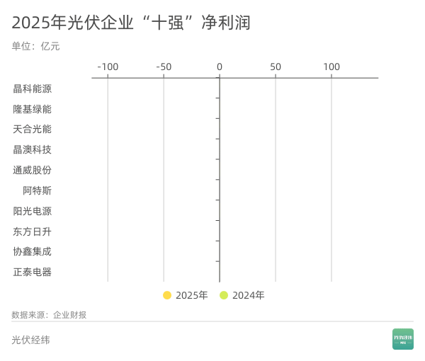 净利润是企业盈利能力的核心体现,2025年,十强企业净利润表现分化更为明显,进一步凸显了不同赛道的抗风险能力差异,也反映出光伏行业“强者恒强、弱者承压”的洗牌格局。