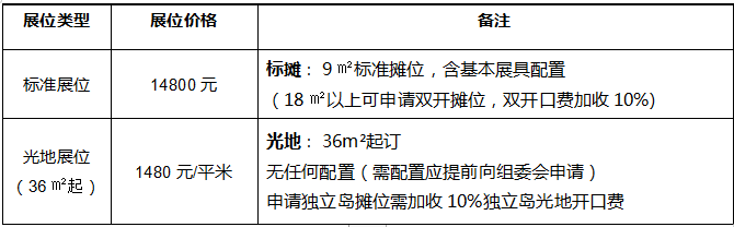 展位类型及价格
