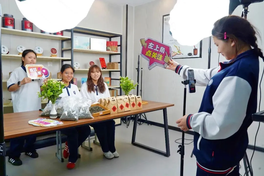 更让人眼前一亮的是,学校里还“藏”着直播间。学校引入合作企业,联合双江邦改合作社共建茶叶直播实训项目,学生轮流走进镜头前,学习产品推介、线上销售。表现好的,每月能拿到1000到3000元的实习补贴。目前,这个直播间月销售额稳定在50万到100万元,年销售额破千万,产品远销广东、北京等地。学生们在校期间就接轨了真实市场,积累了一手实战经验。