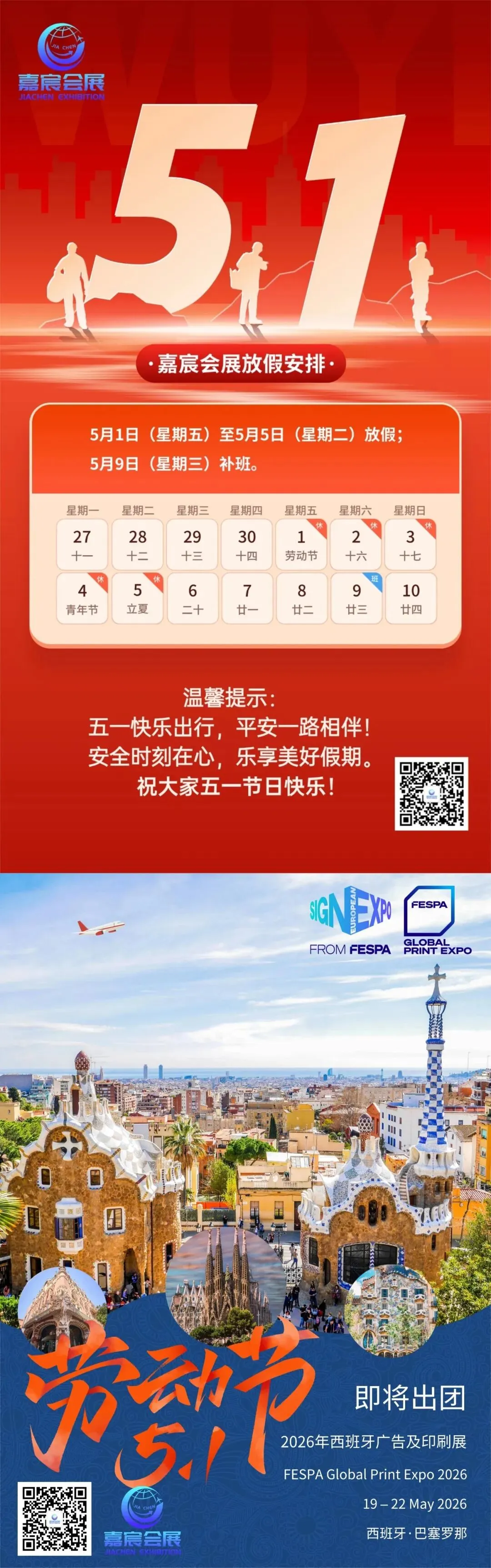 根据国家法定节假日安排,嘉宸会展现将 2026 年五一劳动节放假安排通知如下: