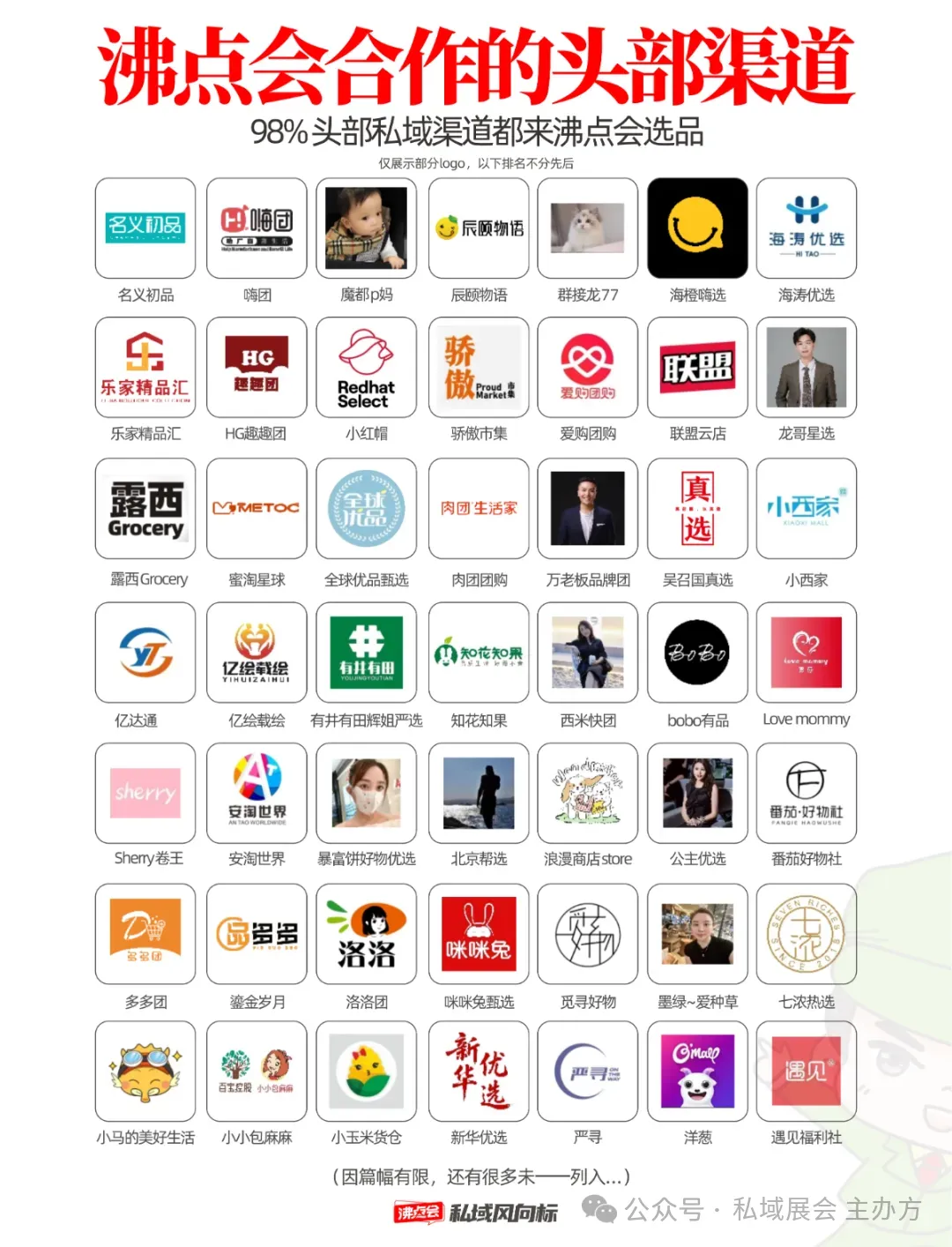 至今,沸点会已合作超千家头部私域渠道,服务伊利、卫龙、北京协和、敷尔佳、自然堂、野狮、立白、天士力等知名品牌,是品牌方、供应链切入私域的首选平台!