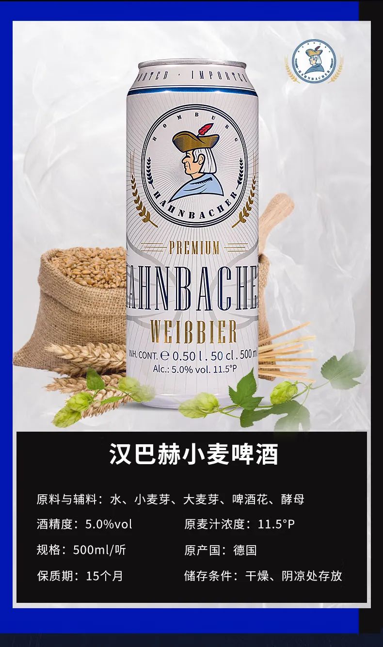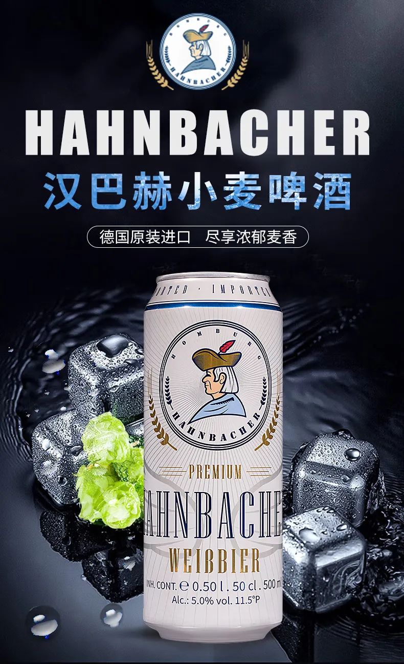 汉巴赫(Hahnbacher)小麦啤酒500ml*24听 整箱装 德国原装进口