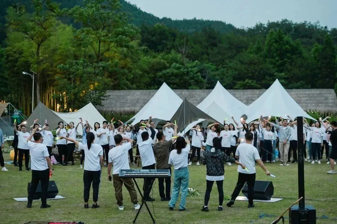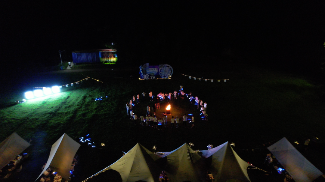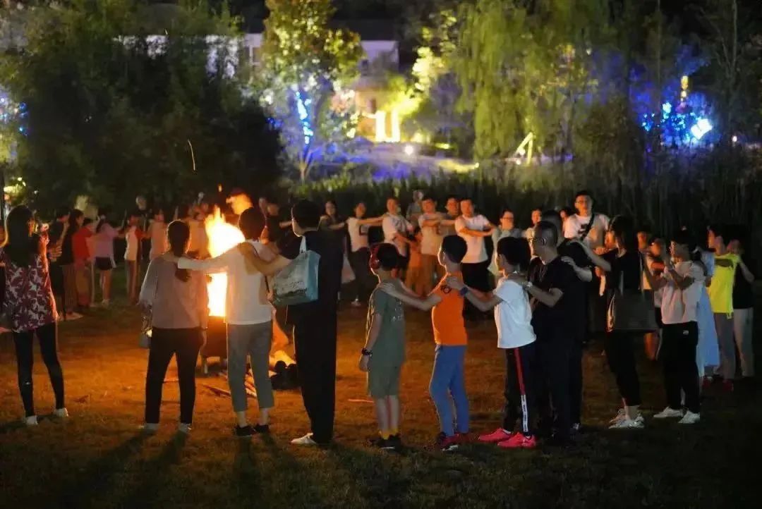 天色渐晚,夜晚的重头戏才正式拉开序幕!温暖的火光将大家聚集在一起,动感的音乐,快乐的舞步,大家手拉手围着篝火?玩得不亦乐乎,现场的气氛一波又一波推向高潮~