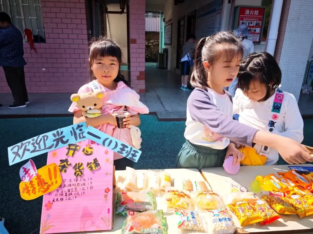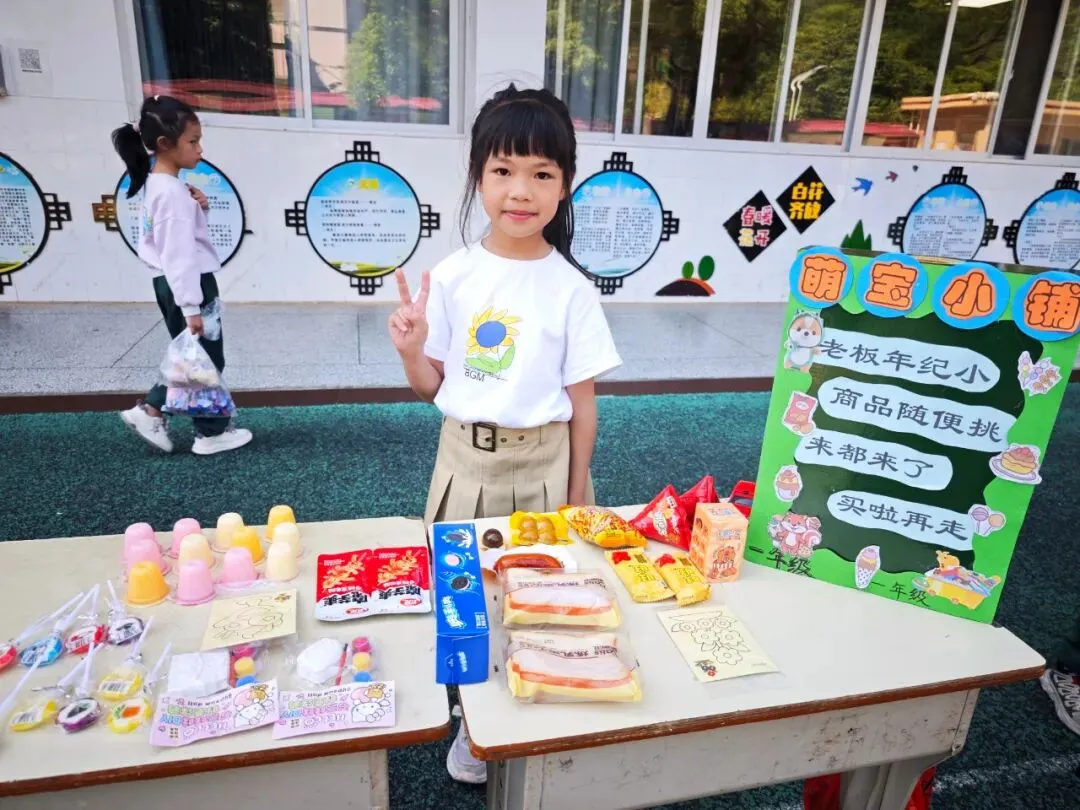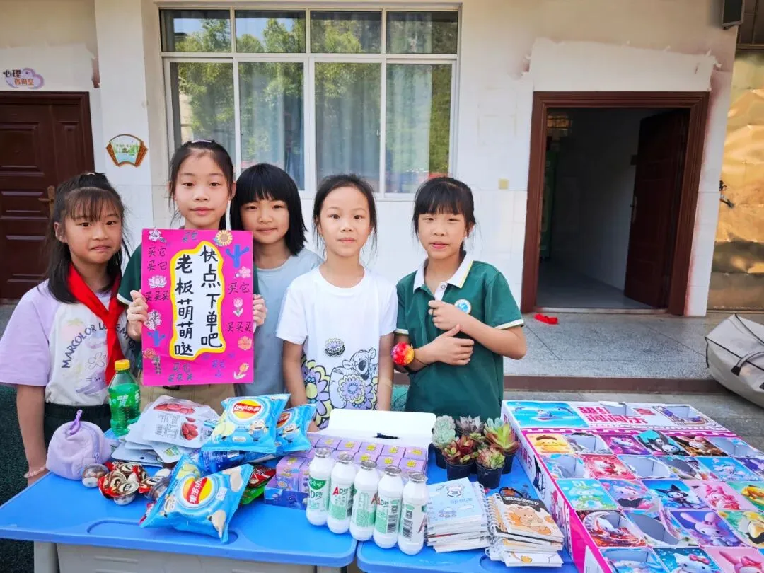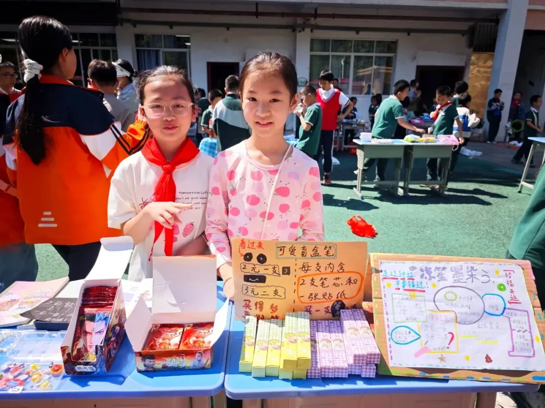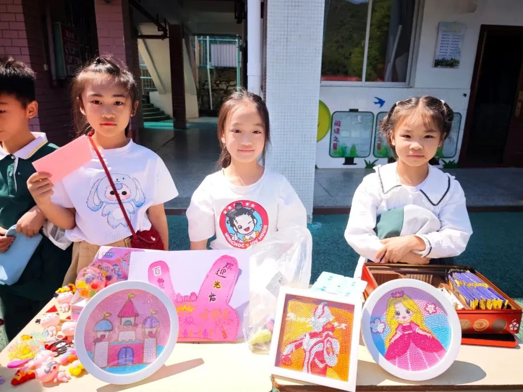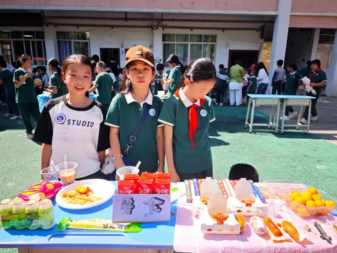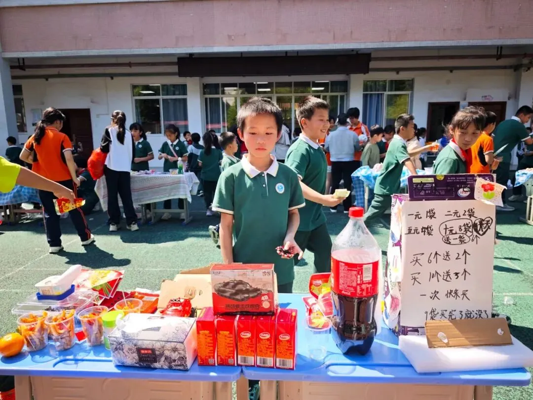 下午 14:30,交易会正式拉开帷幕。大操场上,8 个班级摊位整齐排列,色彩鲜艳的手绘招牌、创意满满的促销标语、琳琅满目的商品,让整个操场瞬间变身热闹的 “童趣集市”。“走过路过不要错过!手工小书签,只要 1 元钱!”“这本书九成新,还送配套书签哦!” 小掌柜们热情地招揽顾客,礼貌用语不离口;小顾客们认真比价、按需选购,在 “讨价还价” 中学习合理消费、理性决策。交易的商品里,既有承载阅读回忆的书籍、实用的文具,也有同学们亲手制作的手工艺品、创意摆件,每一件物品背后,都藏着孩子们的劳动心意与创造热情。