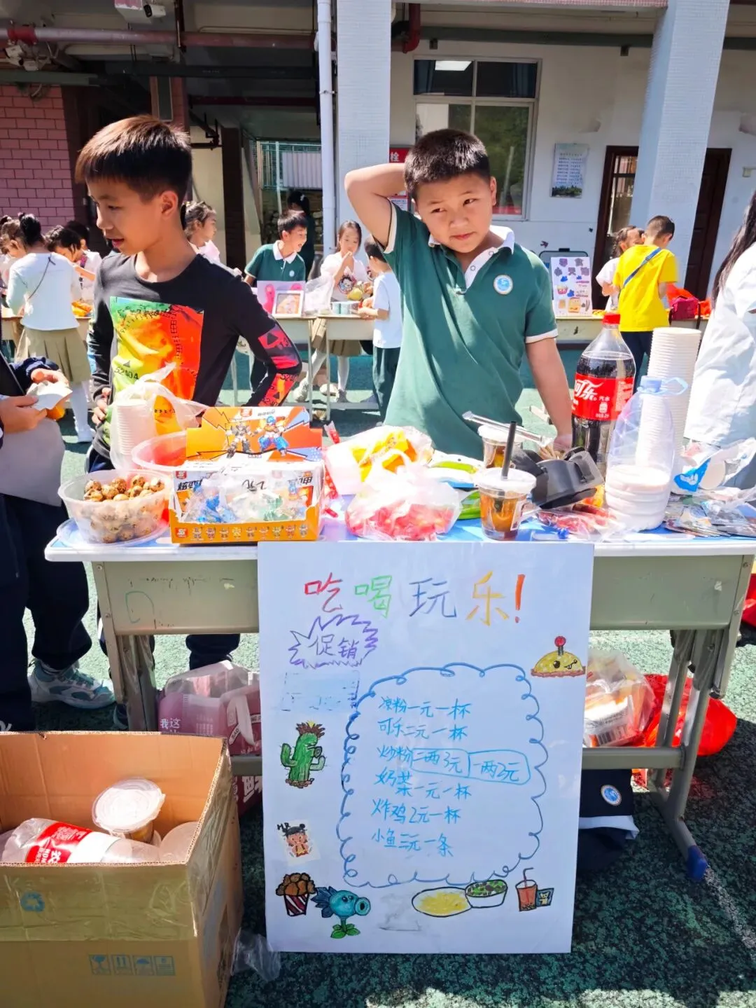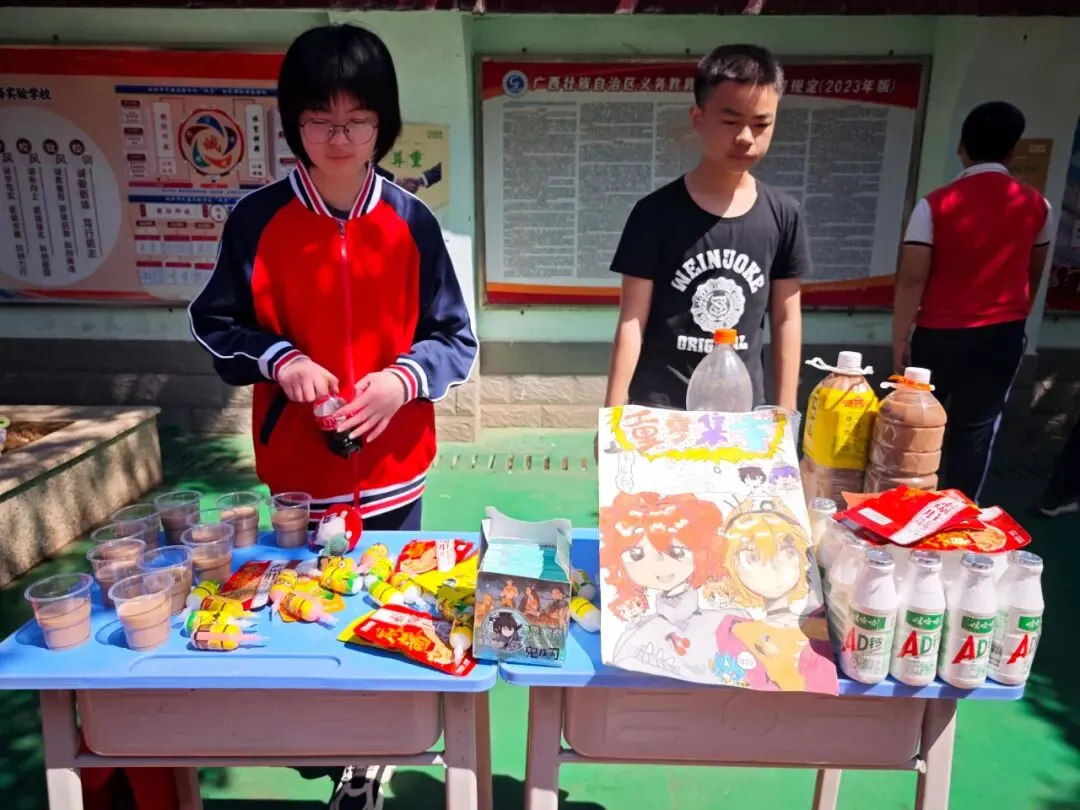 活动前期,各班学生以小组为单位,开启了一场 “劳动筹备大挑战”:从自主组队、推选摊位负责人,到整理闲置书籍、文具,制作手工制品、创意小摆件,再到亲手设计摊位海报、制作价格标签、准备桌布与收纳盒…… 每一个环节都由学生独立完成,大家在亲手整理、制作、布置的过程中,体会着 “一份付出,一份收获” 的劳动真谛。不少同学为了让自己的摊位更有特色,反复打磨海报设计、练习推销话术,在实践中悄悄解锁了规划、合作与创造的能力。