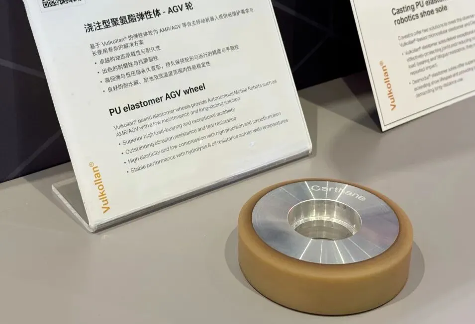 科思创提供基于Vulkollan®的微孔发泡弹性体与基于Desmodur®的实心浇注弹性体两种解決方案,满足机器人不同行走工况的需求。