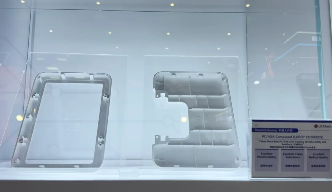 LG化学在展会现场首次展出适用于人形机器人全系列的创新材料,涵盖外饰、传感器、内部线路和能源管理系统等各类组件。