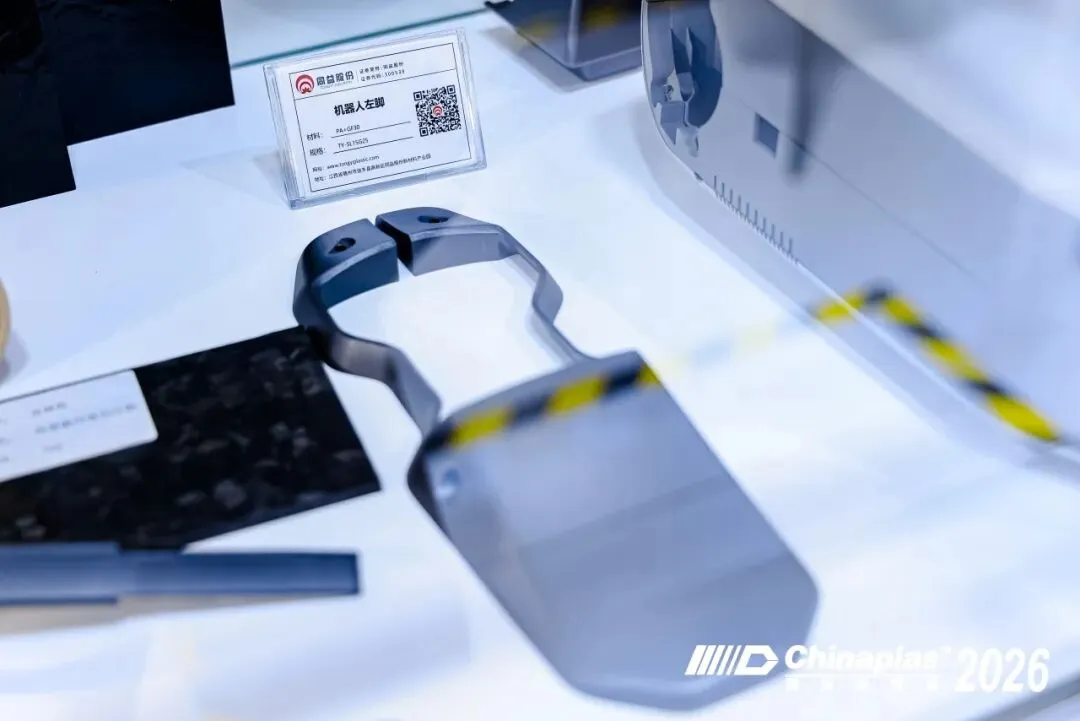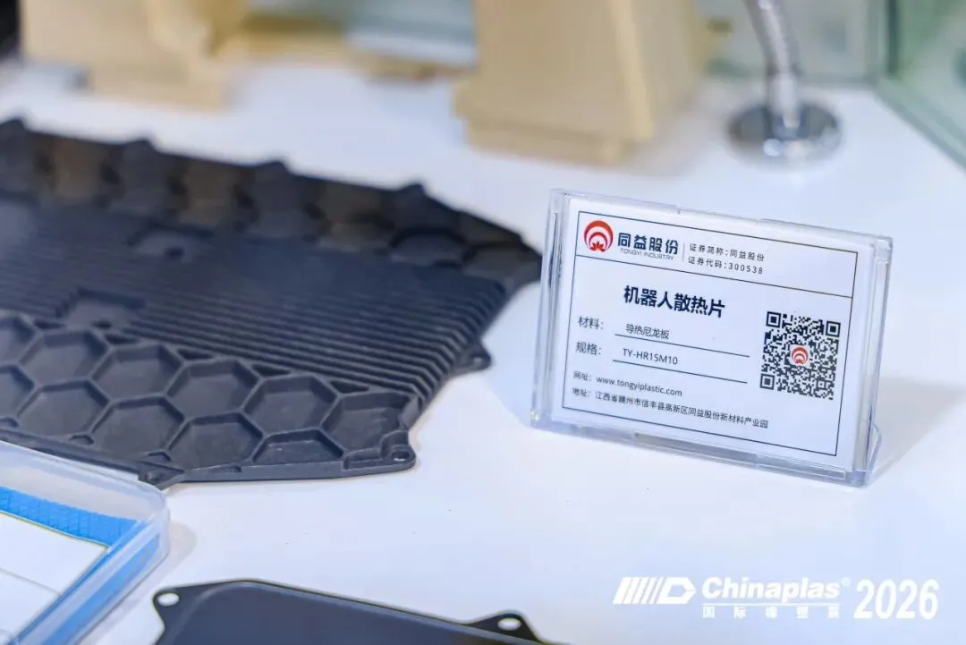 在同益股份展台机器人材料应用专区展示了适配关节模组、机械臂结构件的高性能材料,助力机器人产业升级。