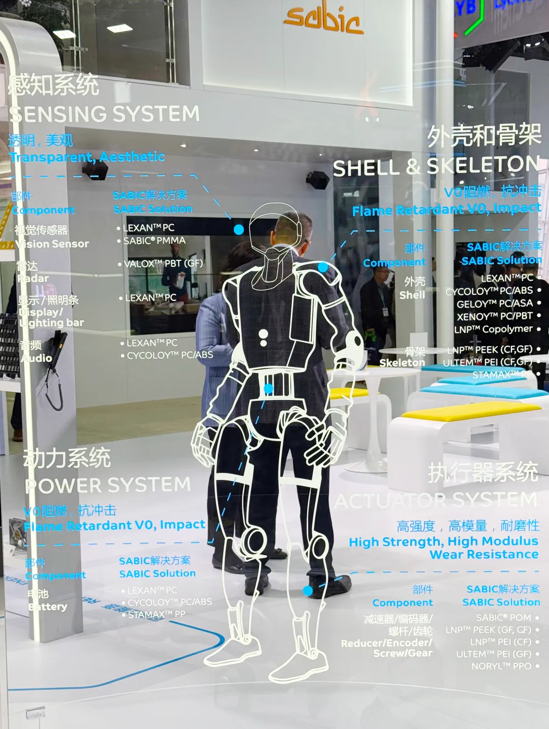▲SABIC在“智能设备”区域首次展示了面向人形机器人行业的综合解决方案。