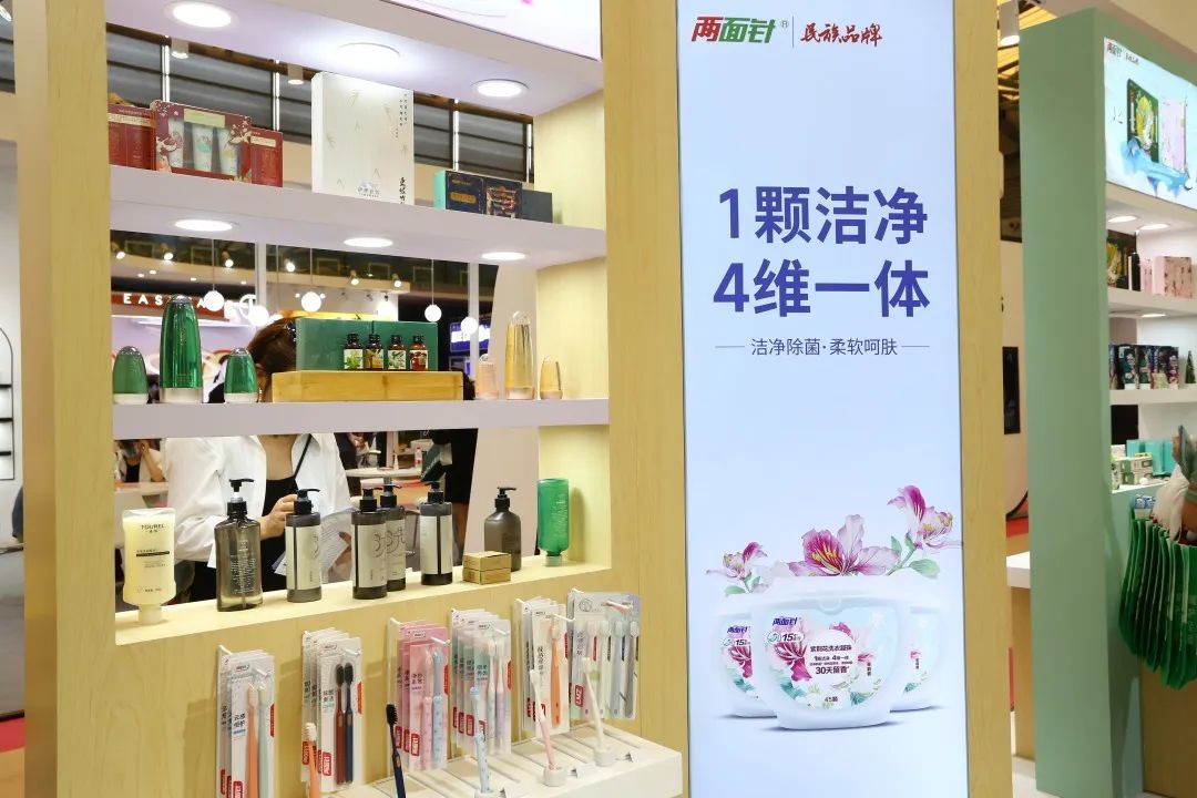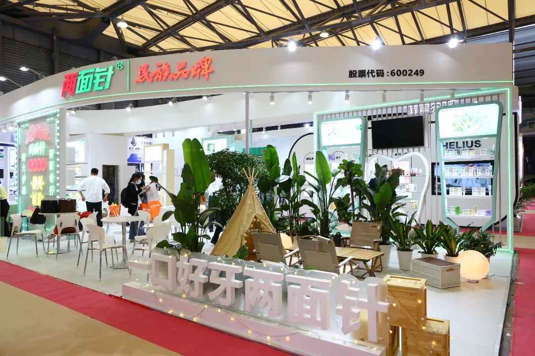 开馆首日,众星云集。两面针凭借独具一格的展位设计,在众多场馆中脱颖而出。以绿色为主题,现场绿植盆栽鲜亮抢眼,凸显两面针绿色健康的品牌理念。开放式的空间设计,让商务洽谈区更加明亮舒适。第一天便拥有超高人气,展位现场人潮涌动、络绎不绝。