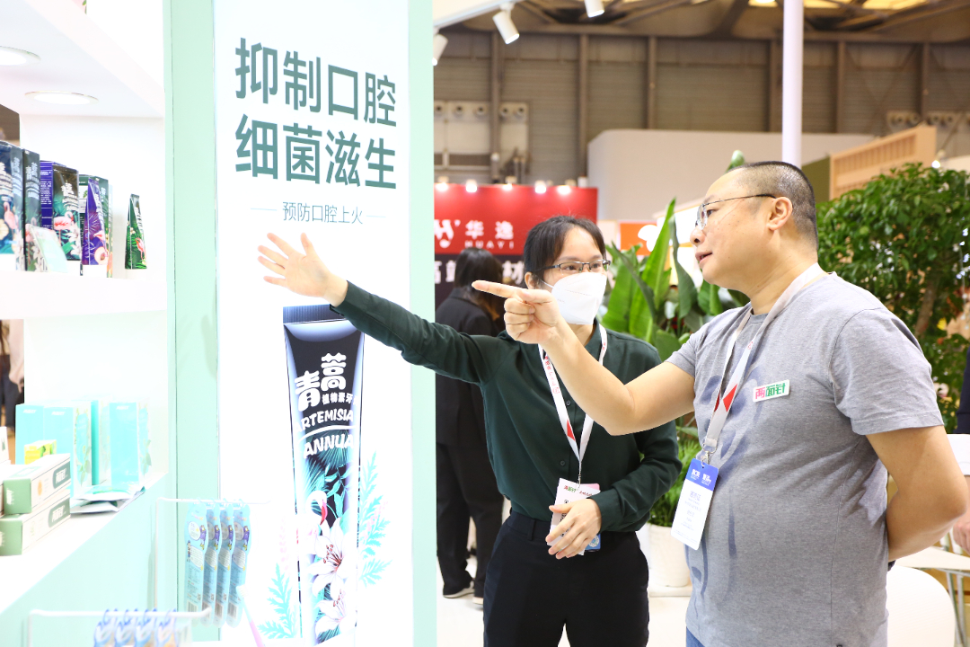 公司党委副书记、副董事长、总裁龚慧泉亲临展位,与来访经销商和客户交流互动。技术研发人员和业务员们在现场为客户们互动演示分析两面针牙膏配方以及牙刷的使用方式和注意点。以时尚、健康为标签亮点的两面针经典产品以及出色的功效作用收获了现场一大波观众客户的一致好评,众多客户纷纷表达了与两面针开展业务合作的意愿。
